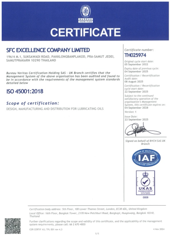 SFC Excellence คือผู้บุกเบิกและผู้นำธุรกิจด้านน้ำมันหล่อลื่นรายแรกของไทย ที่ก้าวสู่การเป็น อันดับหนึ่งของประเทศ